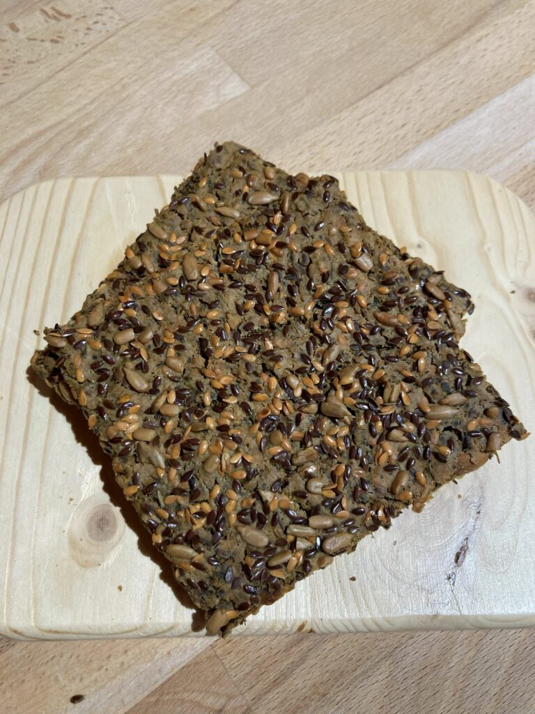 À base de farine de petit épeautre, agrémenté de graines de courges, d’herbes de Provence et de graines de lin, son croquant accompagnera vos apéritifs.