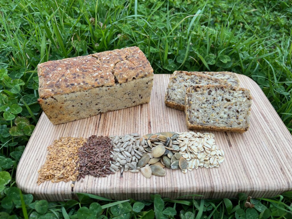 Pain avec des flocons d’avoine, des graines de courge, de lin doré, de lin brun et de tournesol.